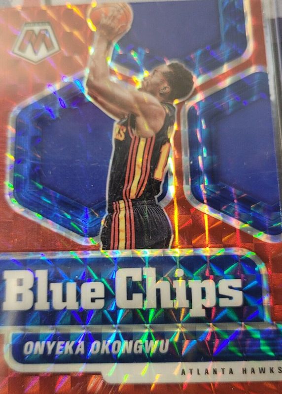 The Onyeka Okongwu 2020 Mosaic #1 Blue Chips - Red Rookie card in Raw condition has not changed in price in the last 30 days and was last sold for $2.99 .