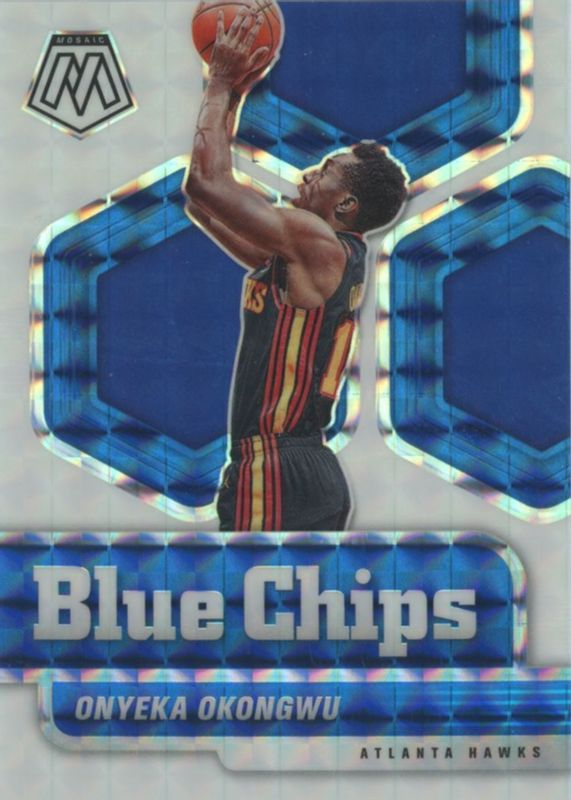 The Onyeka Okongwu 2020 Mosaic #1 Blue Chips - White /25 Rookie card in Raw condition has not changed in price in the last 30 days and was last sold for $4.25 .