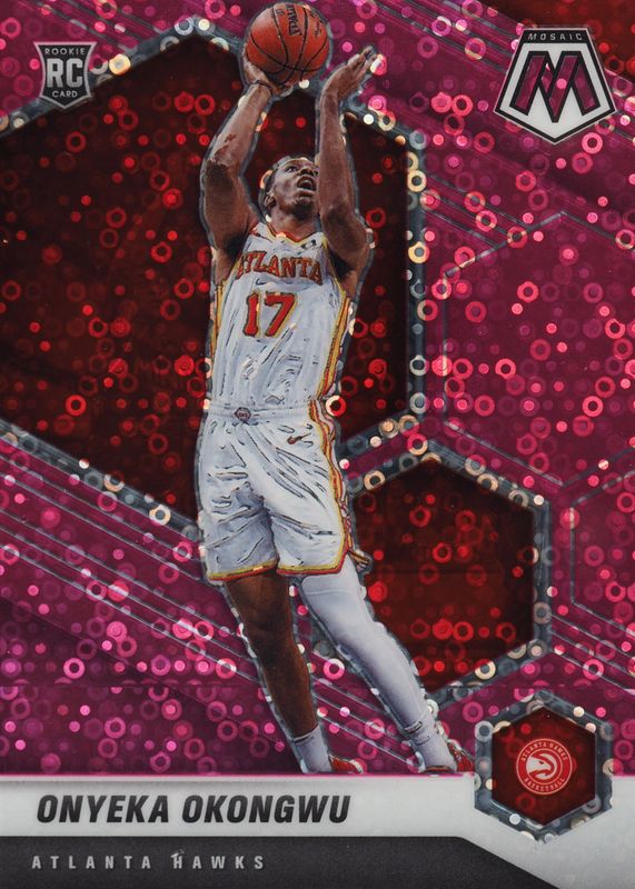 The Onyeka Okongwu 2020 Mosaic #225 Fast Break Pink /20 Rookie card in Raw condition has not changed in price in the last 30 days and was last sold for $17.50 .