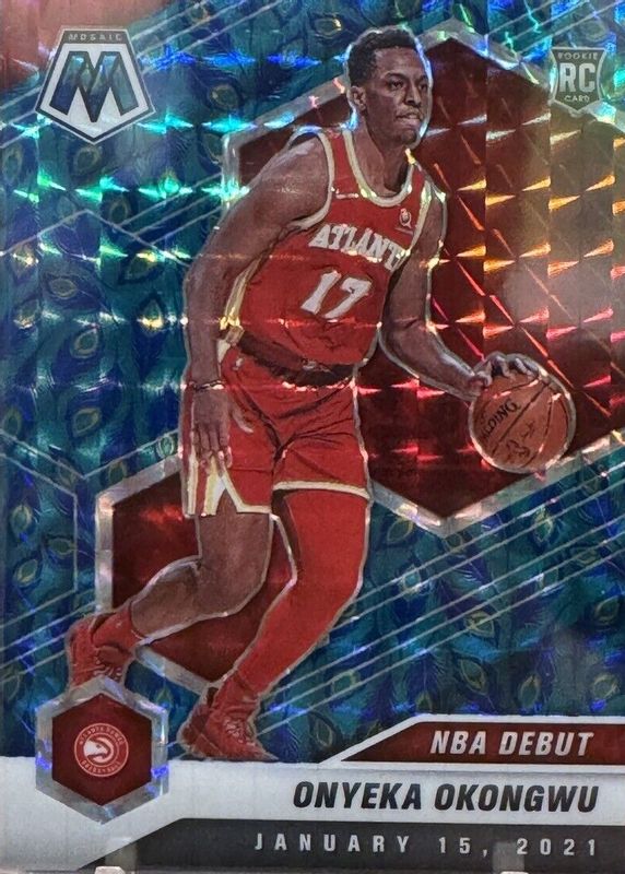 The Onyeka Okongwu 2020 Mosaic #274 NBA Debut - Choice Peacock /(SSP) Rookie card in Raw condition has not changed in price in the last 30 days and was last sold for $18.03 .