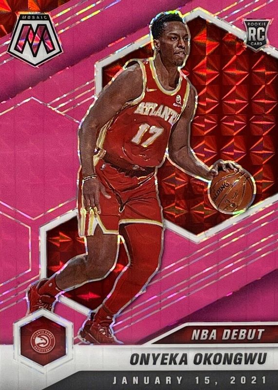 The Onyeka Okongwu 2020 Mosaic #274 NBA Debut - Pink Fluorescent /10 Rookie card in Raw condition has not changed in price in the last 30 days and was last sold for $20.00 .