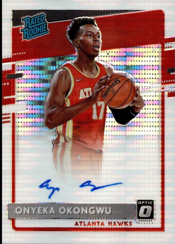 The Onyeka Okongwu 2020 Optic #156 Rated Rookie Signatures - Pulsar /19 card in Raw condition has not changed in price in the last 30 days and was last sold for $51.10 .