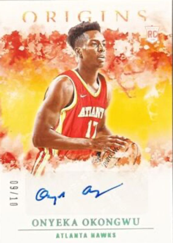 The Onyeka Okongwu 2020 Origins #RA-ONY Rookie Autographs - Gold /10 card in Raw condition has not changed in price in the last 30 days and was last sold for $8.67 .