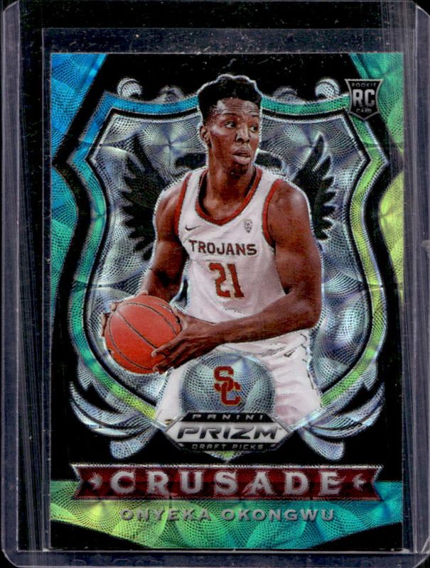 The Onyeka Okongwu 2020 Prizm Draft Picks #85 Choice Blue Yellow Green Rookie card is 1 of 122 Onyeka Okongwu's card variations in the 2020 Prizm Draft Picks set being tracked by Sports Card Investor, including #85 Base, #45 Base, #5 Base, #45 Choice Blue Yellow Green, and #5 Choice Blue Yellow Green.