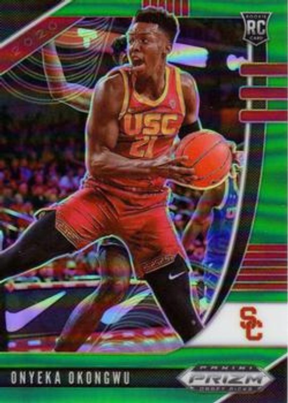 The Onyeka Okongwu 2020 Prizm Draft Picks #45 Green Rookie card is 1 of 122 Onyeka Okongwu's card variations in the 2020 Prizm Draft Picks set being tracked by Sports Card Investor, including #85 Base, #45 Base, #5 Base, #85 Choice Blue Yellow Green, and #45 Choice Blue Yellow Green.