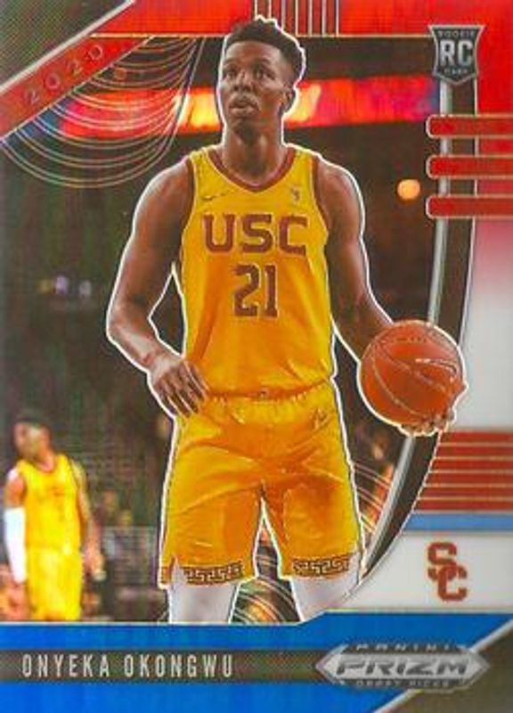 The Onyeka Okongwu 2020 Prizm Draft Picks #5 Red White Blue Rookie card is 1 of 122 Onyeka Okongwu's card variations in the 2020 Prizm Draft Picks set being tracked by Sports Card Investor, including #85 Base, #45 Base, #5 Base, #85 Choice Blue Yellow Green, and #45 Choice Blue Yellow Green.