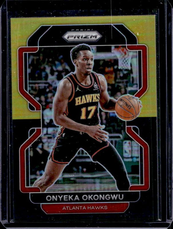 The Onyeka Okongwu 2021 Prizm #75 Black Gold /5 card is 1 of 60 Onyeka Okongwu's card variations in the 2021 Prizm set being tracked by Sports Card Investor, including Base, Blue NBA 75th Anniversary, Blue Wave, Choice Blue Yellow Green, and Factory Set Blue Hyper.
