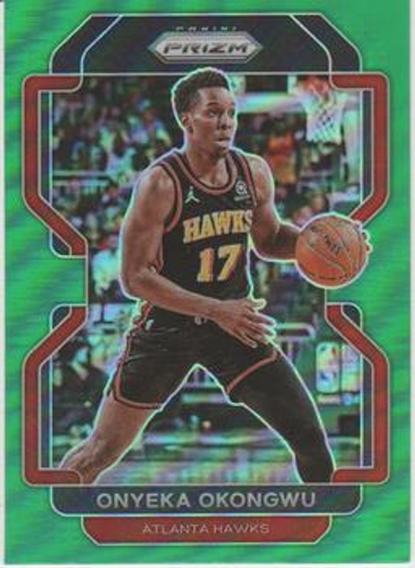The Onyeka Okongwu 2021 Prizm #75 Green card is 1 of 60 Onyeka Okongwu's card variations in the 2021 Prizm set being tracked by Sports Card Investor, including Base, Blue NBA 75th Anniversary, Blue Wave, Choice Blue Yellow Green, and Factory Set Blue Hyper.