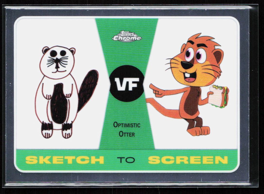 The Optimistic Otter 2025 Topps Chrome VeeFriends #SK-10 Sketch to Screen card is 1 of 7 Optimistic Otter's card variations in the 2025 Topps Chrome VeeFriends set being tracked by Sports Card Investor, including Sketch to Screen - VeeFriends Green Refractor /99, Sketch to Screen - Gold Refractor /50, Sketch to Screen - Orange Refractor /25, Sketch to Screen - Black Refractor /10, and Sketch to Screen - Red Refractor /5.