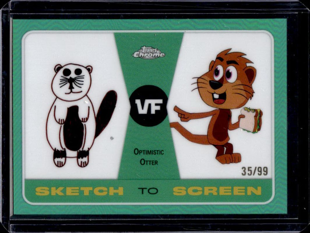 The Optimistic Otter 2025 Topps Chrome VeeFriends #SK-10 Sketch to Screen - VeeFriends Green Refractor /99 card is 1 of 7 Optimistic Otter's card variations in the 2025 Topps Chrome VeeFriends set being tracked by Sports Card Investor, including Sketch to Screen, Sketch to Screen - Gold Refractor /50, Sketch to Screen - Orange Refractor /25, Sketch to Screen - Black Refractor /10, and Sketch to Screen - Red Refractor /5.