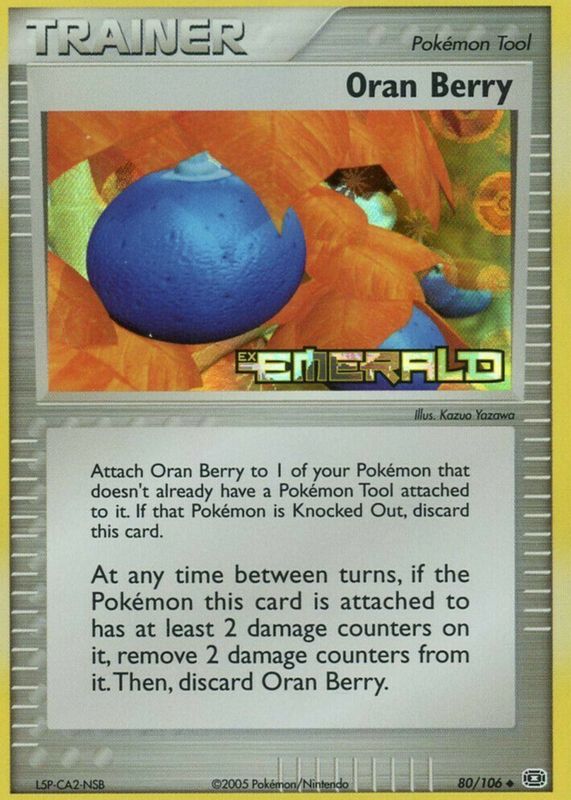 The Oran Berry 2005 EX: Emerald #080/106 Reverse Holo card in Raw TCG (Near Mint) condition has moved up $5.59 (+79.9%) in the last 30 days and was last sold for $12.59 .