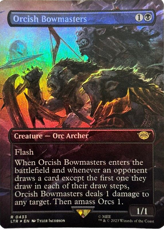 The Orcish Bowmasters 2023 The Lord of the Rings: Tales of Middle-Earth #433 Foil Borderless card in Raw TCG (Near Mint) condition has moved down -$2.57 (-4.9%) in the last 30 days and was last sold for $49.42 .
