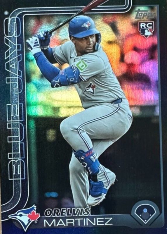 This card is 1 of 136 Orelvis Martinez's card variations in the 2025 Topps set being tracked by Sports Card Investor, including Base, Aqua Holo Foil, Aqua Rainbow, Diamante Foil, and Eggs.