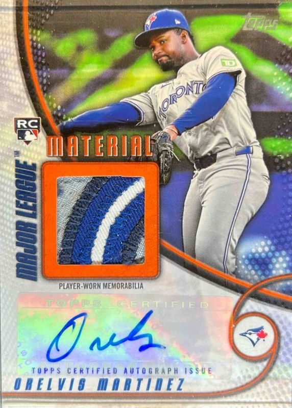 Auctions Ending Soon for Orelvis Martinez 2025 Topps #MLMAR-OM Major League Material Autographs - Orange /25 Rookie RAW