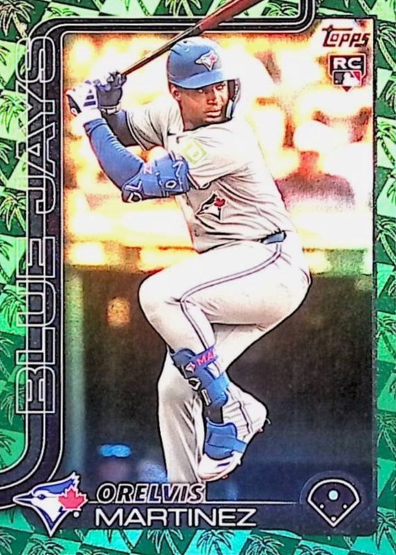 This card is 1 of 136 Orelvis Martinez's card variations in the 2025 Topps set being tracked by Sports Card Investor, including Base, Aqua Holo Foil, Aqua Rainbow, Diamante Foil, and Eggs.