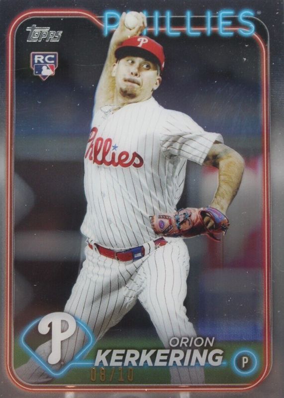 This card is 1 of 37 Orion Kerkering's card variations in the 2024 Topps set being tracked by Sports Card Investor, including Base, 582 Montgomery Club, All-Star Game Exclusive, Aqua, and First Card.