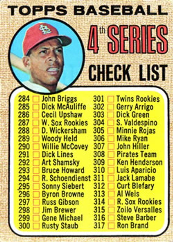 Other popular players in the 1968 Topps set include Carl Yastrzemski, World Series, Frank Robinson, Harmon Killebrew, and Brooks Robinson.