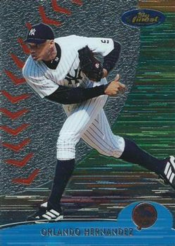 The Orlando Hernandez 2000 Topps Finest #18 Base card is 1 of 3 Orlando Hernandez's card variations in the 2000 Topps Finest set being tracked by Sports Card Investor, including Gold Refractor /100, and Refractor /1000.