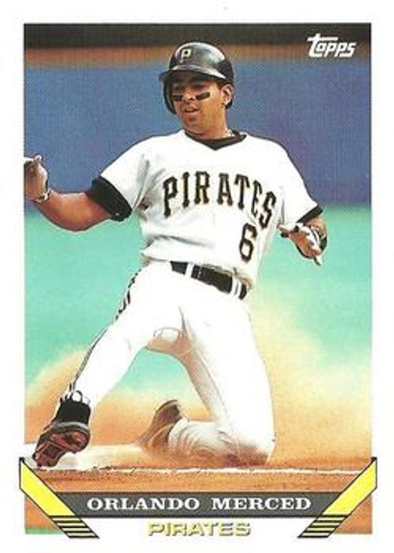 The Orlando Merced 1993 Topps #378 Base card is 1 of 2 Orlando Merced's card variations in the 1993 Topps set being tracked by Sports Card Investor, including Gold.