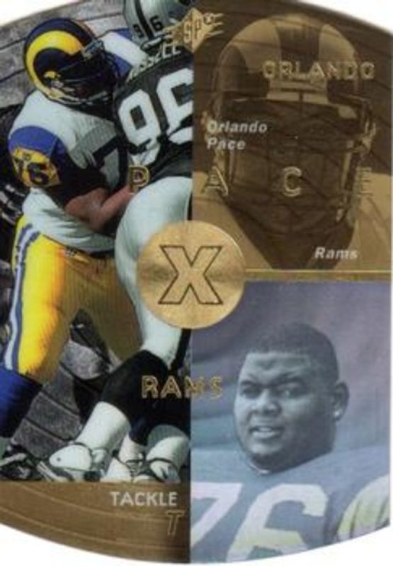 The Orlando Pace 1998 SPx #43 Gold card is 1 of 6 Orlando Pace's card variations in the 1998 SPx set being tracked by Sports Card Investor, including Base, Bronze, Grand Finale, Silver, and Steel.