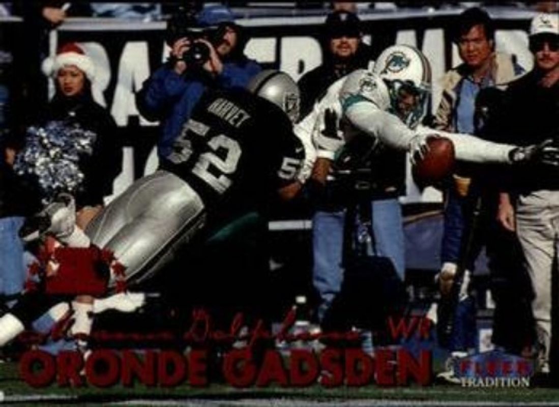 The Oronde Gadsden 1999 Fleer Tradition #90 Base card is 1 of 3 Oronde Gadsden's card variations in the 1999 Fleer Tradition set being tracked by Sports Card Investor, including Blitz Collection, and Trophy Collection /20.