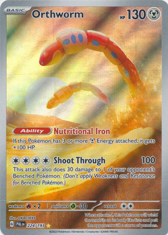 The Orthworm 2023 Scarlet & Violet: Paldea Evolved #224/193 Illustration Rare card in Raw TCG (Near Mint) condition has moved up $1.89 (+42.5%) in the last 30 days and was last sold for $6.34 .