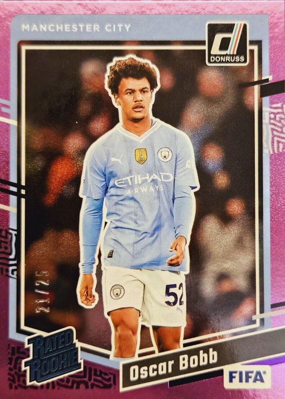 The Oscar Bobb 2023 Donruss #178 Purple /25 Rookie card in Raw condition has not changed in price in the last 30 days and was last sold for $13.50 .