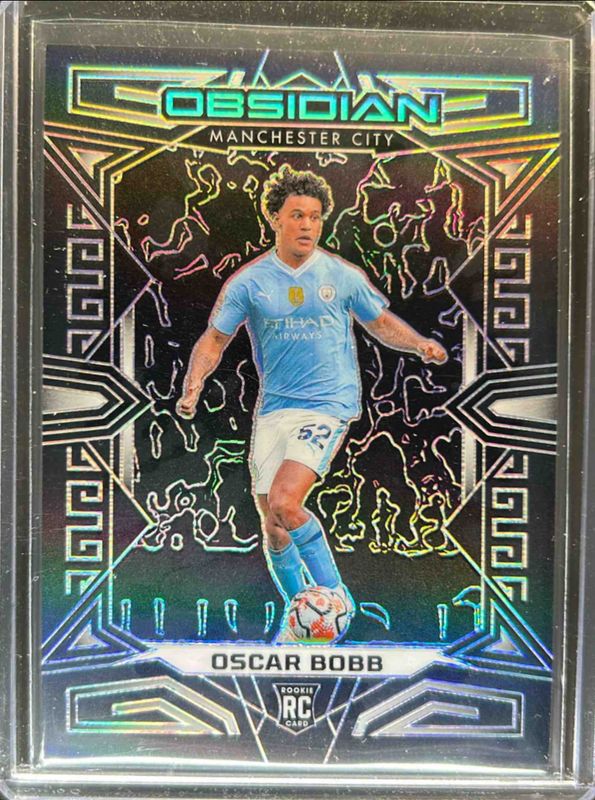 The Oscar Bobb 2023 Obsidian #83 Base /120 Rookie card is 1 of 17 Oscar Bobb's card variations in the 2023 Obsidian set being tracked by Sports Card Investor, including Electric Etch Red Pulsar /49, Electric Etch Orange /40, Electric Etch Red Crystals /30, Electric Etch Purple Flood /25, and Electric Etch Blue /20.