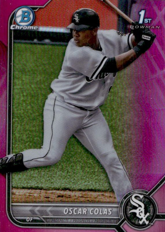 The Oscar Colas 2022 Bowman Chrome #BCP-152 Prospects - Fuchsia & Pink Vapor Refractor /199 (1st) card in Raw condition has not changed in price in the last 30 days and was last sold for $0.99 .