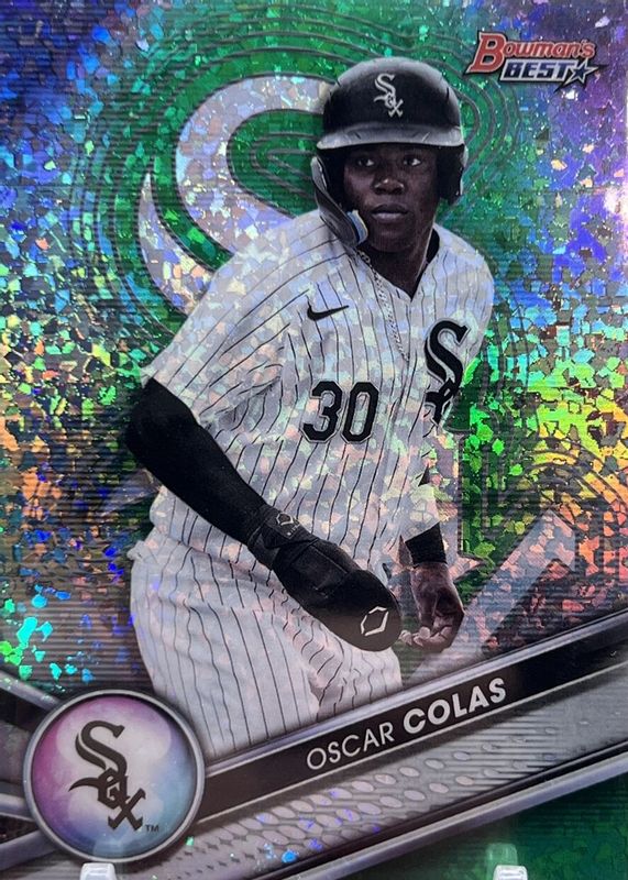 2022 Bowman’s Best Oscar Colas GREEN MINI DIAMOND REFRACTOR #’d /99 White Sox