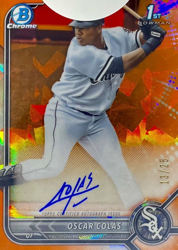 Auctions Ending Soon for Oscar Colas 2022 Bowman Sapphire Edition #BSPA-OCS Chrome Prospect Auto - Orange /25 (1st) RAW
