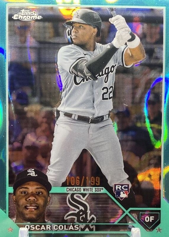 Best Prices Available For Sale of Oscar Colas 2023 Topps Chrome #145 Aqua Lava Refractor /199