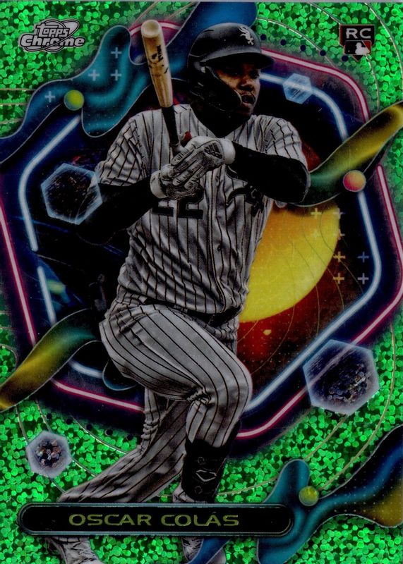 2023 Topps Chrome Cosmic Oscar Colas Green Speckle /75 RC SP #104 White Sox