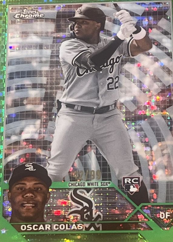 Best Prices Available For Sale of Oscar Colas 2023 Topps Chrome #145 Green Sonar Refractor /99