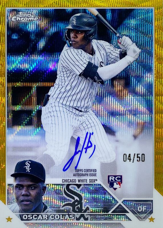 Auctions Ending Soon for Oscar Colas 2023 Topps Chrome #RA-OC Rookie Autographs - Gold Wave Refractor /50 RAW
