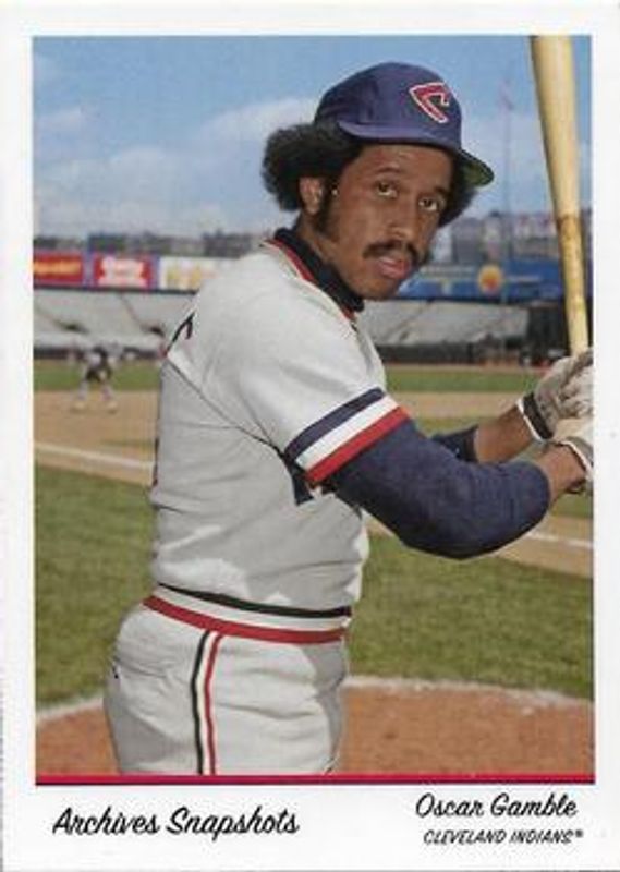 The Oscar Gamble 2016 Topps Archives Snapshots #AS-OG Base card is 1 of 5 Oscar Gamble's card variations in the 2016 Topps Archives Snapshots set being tracked by Sports Card Investor, including Black & White, Autographs /350, Autographs - Black & White /10, and Autographs - Negative /5.