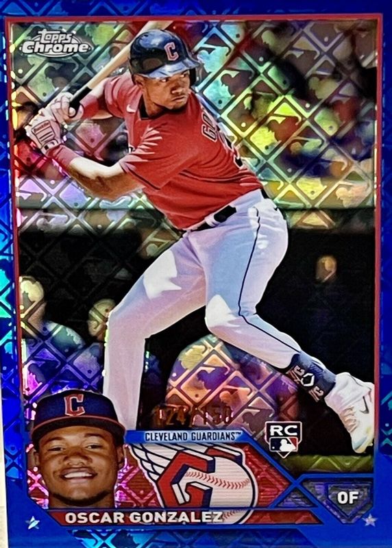 2023 Topps Chrome Oscar Gonzalez Blue Logofractor RC /150 Cleveland