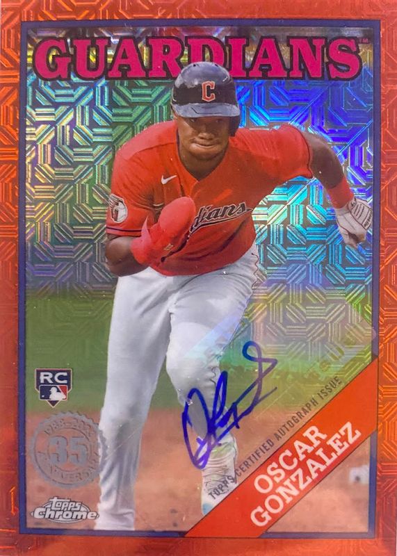 Auctions Ending Soon for Oscar Gonzalez 2023 Topps Silver Pack #T88C-92 1988 Chrome Promo Autographs - Orange Refractor (Series 1) /25 Rookie RAW