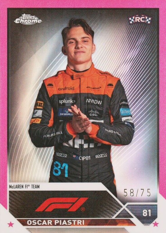 #/75 2023 Topps F1 Chrome Oscar Piastri Pink Refractor RC Rookie Formula #40