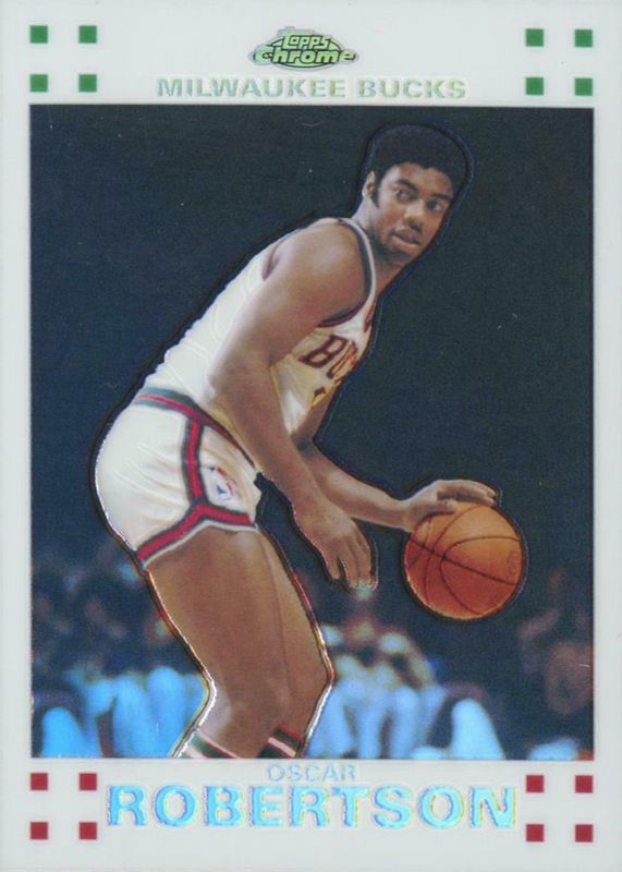This card is 1 of 4 Oscar Robertson's card variations in the 2007 Topps Chrome set being tracked by Sports Card Investor, including Refractor /999, Orange Refractor /199, and X-Fractor /50.
