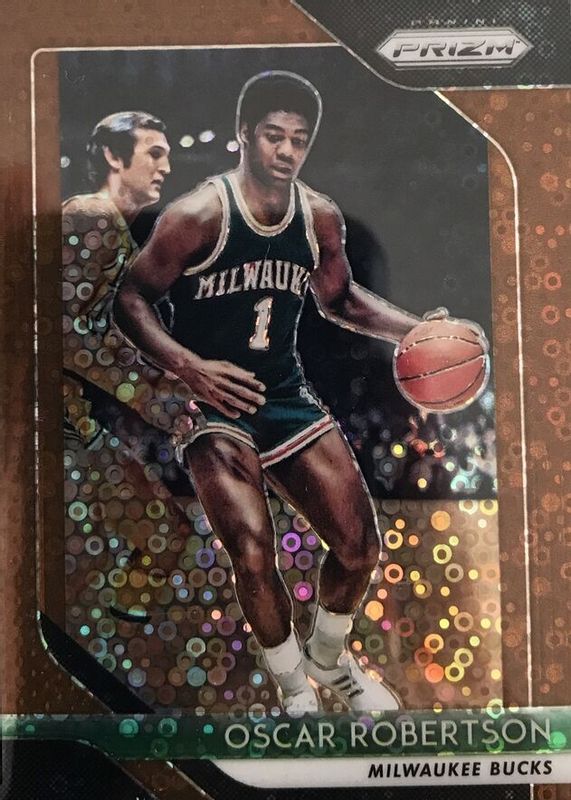 The Oscar Robertson 2018 Prizm #125 Fast Break Bronze /20 card in Raw condition has not changed in price in the last 30 days and was last sold for $25.00 .