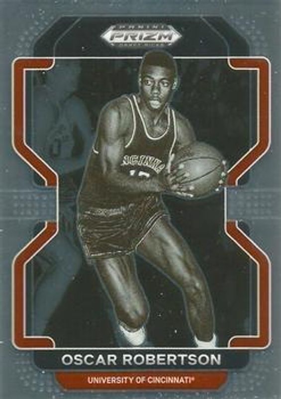 The Oscar Robertson 2022 Prizm Draft Picks #37 Base card is 1 of 34 Oscar Robertson's card variations in the 2022 Prizm Draft Picks set being tracked by Sports Card Investor, including Blue Circles, Choice Blue Yellow & Green, Choice Tiger Stripe, Green, and Green Wave.