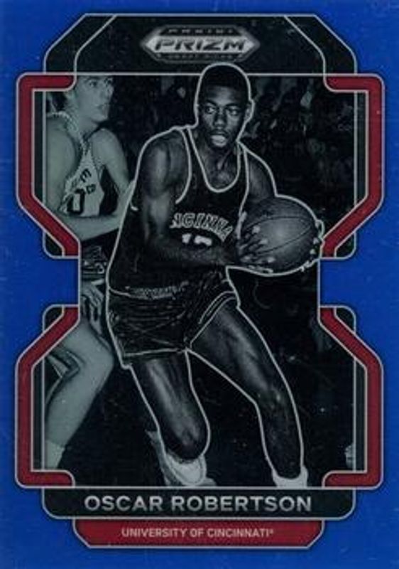 The Oscar Robertson 2022 Prizm Draft Picks #37 Blue /199 card is 1 of 34 Oscar Robertson's card variations in the 2022 Prizm Draft Picks set being tracked by Sports Card Investor, including Base, Blue Circles, Choice Blue Yellow & Green, Choice Tiger Stripe, and Green.