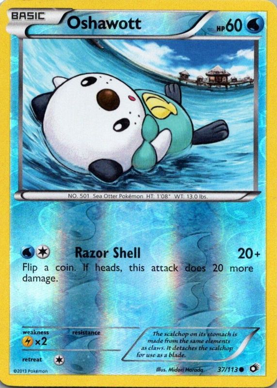 Oshawott 2013 Black & White: Legendary Treasures #037/113 Reverse Holo RAW TCG (LIGHTLY PLAYED) Price Guide