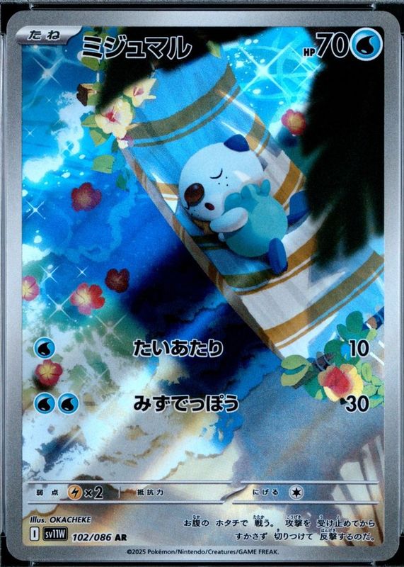 The Oshawott 2025 Japanese Scarlet & Violet: White Flare #102/086 Art Rare card in Raw TCG (Near Mint) condition has moved down -$12.51 (-50.5%) in the last 30 days and was last sold for $12.28 .