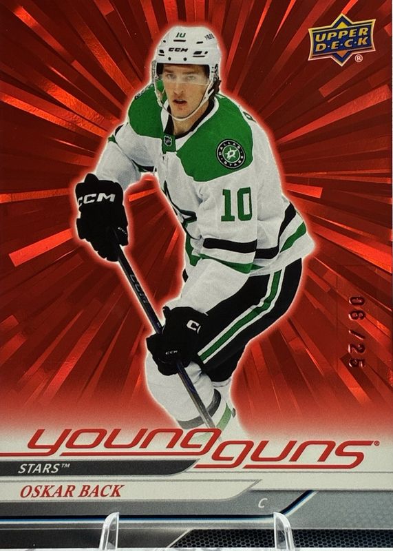 /25 Oskar Back RC 2024-25 Upper Deck Series 2 Young Guns 465 Outburst Red Dallas