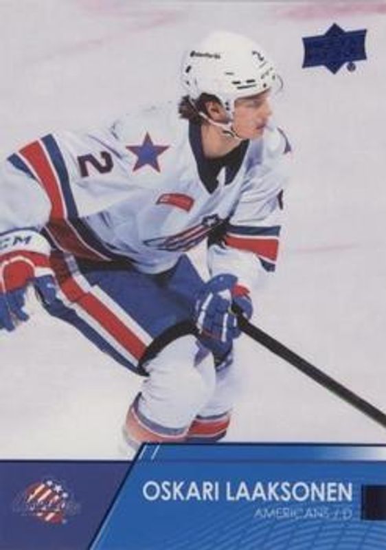 The Oskari Laaksonen 2021 Upper Deck AHL #32 Blue card is 1 of 13 Oskari Laaksonen's card variations in the 2021 Upper Deck AHL set being tracked by Sports Card Investor, including Base, Exclusives /100, High Gloss /10, AHL All Stars, and AHL All Stars Autographs.