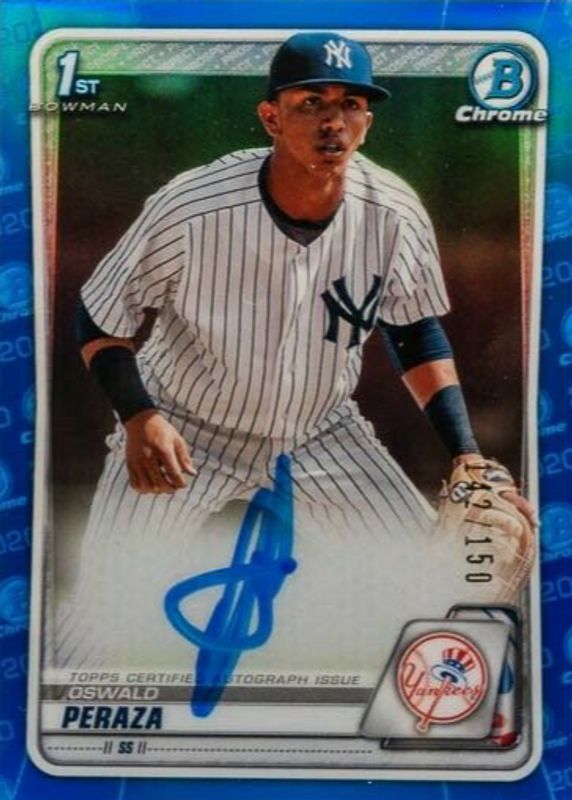 2020 BOWMAN CHROME OSWALD PERAZA #CPA-OP 1ST BOWMAN BLUE REFRACTOR AUTO #/150