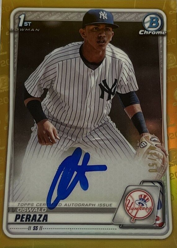 Best Prices Available For Sale of Oswald Peraza 2020 Bowman Chrome #CPA-OP Prospect Auto - Gold Refractor /50 (1st)