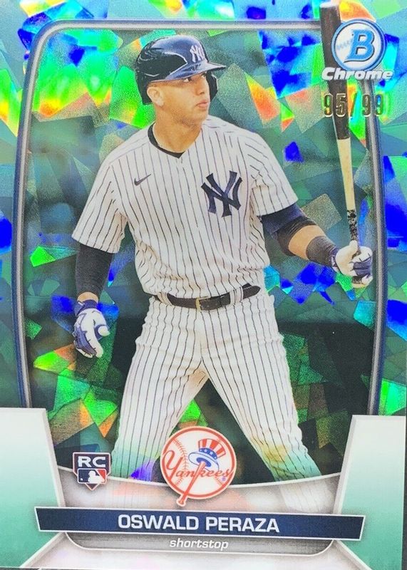 Oswald Peraza 2023 Bowman Chrome Sapphire Edition #44 Aqua /99 Rookie RAW Price Guide